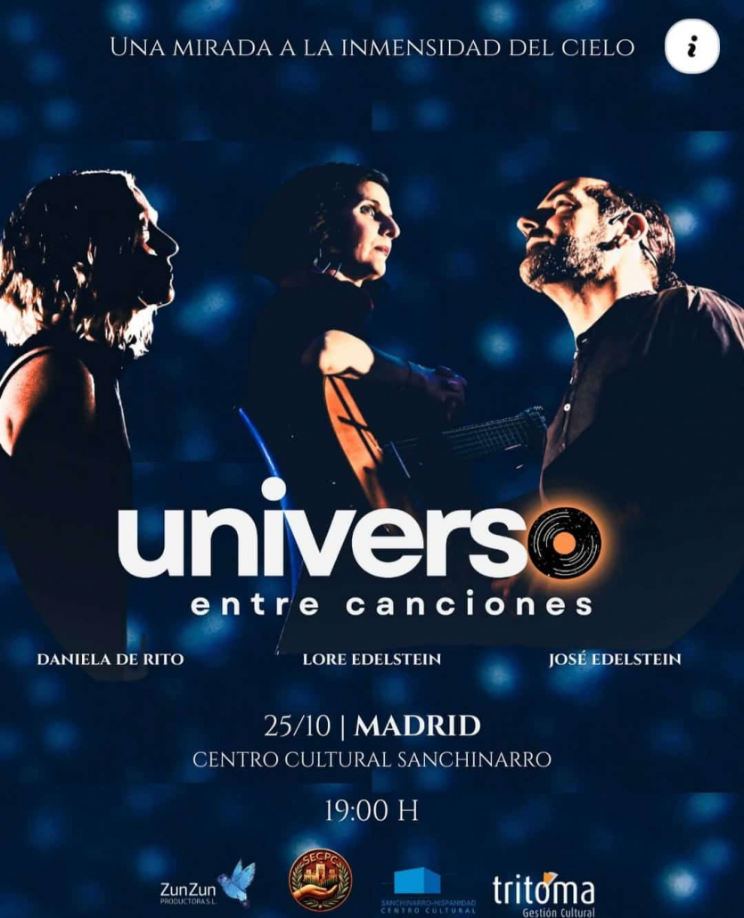 El reconocido físico y divulgador científico José Edelstein (Premio FECyT 2012 y Prismas de Divulgación Científica 2019 y 2023), junto a las músicas argentinas Lore Edelstein (guitarra y percusión) y Daniela De Rito (voz y teclados), integran «Universo entre Canciones», una hermosa e inquieta mirada a la inmensidad del cielo.
