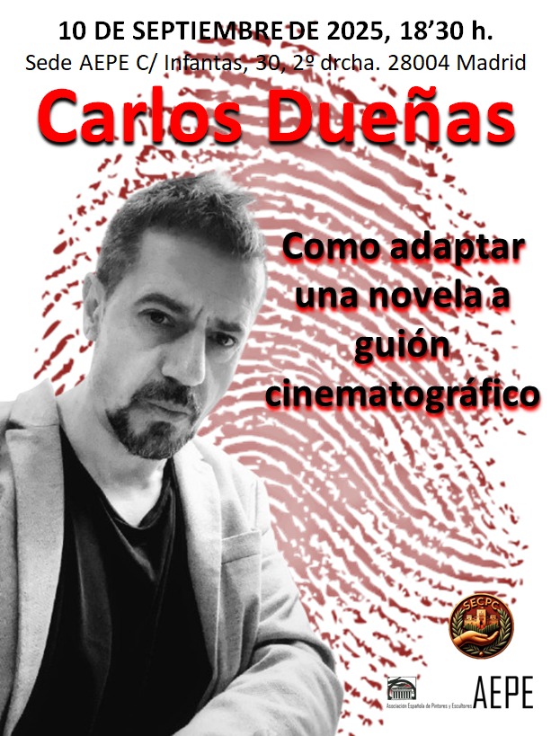 El próximo día 10 de septiembre de 2025, a las 18:30 horas, en la sede social de la AEPE (Asociación Española de Pintores y Escultores) de Madrid, tendrá lugar la lección magistral en la que el escritor y director Carlos Dueñas, autor de más de 100 cortometrajes y autor de la novela «El despertar» (2021), en la que se basa su próxima película, nos ilustrará sobre cómo adaptar una novela a guion cinematográfico.