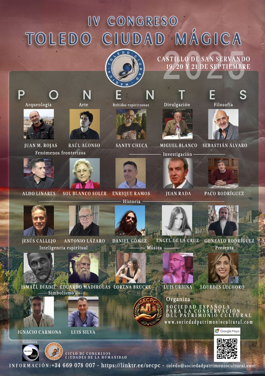 Luis Silva — Los mensajes del simbolismo Luis Silva, el alquimista del Siglo XXI es investigador y divulgador reconocido en estudios de alquimia y simbolismo, autor de Alquimia. Tras la piedra filosofal (premio Juan Antonio Cebrián), acercó claves para “leer” imágenes, emblemas y jeroglíficos espirituales. Mostró cómo el símbolo actúa como lenguaje de lo sagrado: capas de sentido, correspondencias y “puentes” entre arte, ciencia antigua y práctica interior. Aplicó esas claves a piezas cercanas al imaginario toledano, invitando al público a un coloquio final.